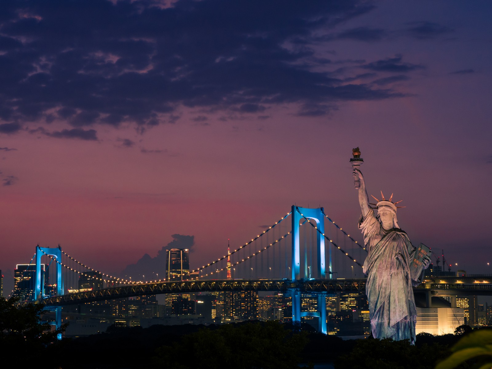 Per cena hamburger e patatine guardando da lontano la Statua della Libertà e il Rainbow Bridge…