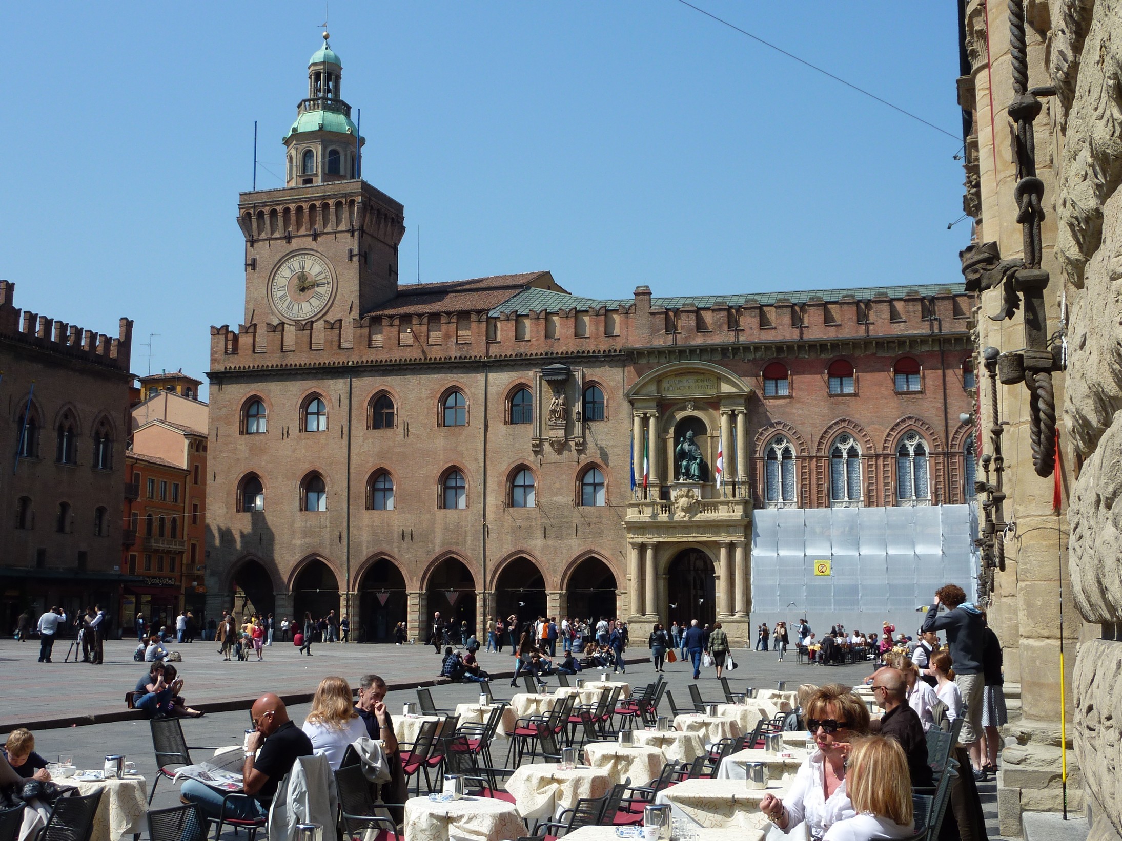 Ne approfitto per fare qualche scatto in Piazza Maggiore e con la solita sfiga che mi ritrovo, sono in corso restauri praticamente ovunque… 😦