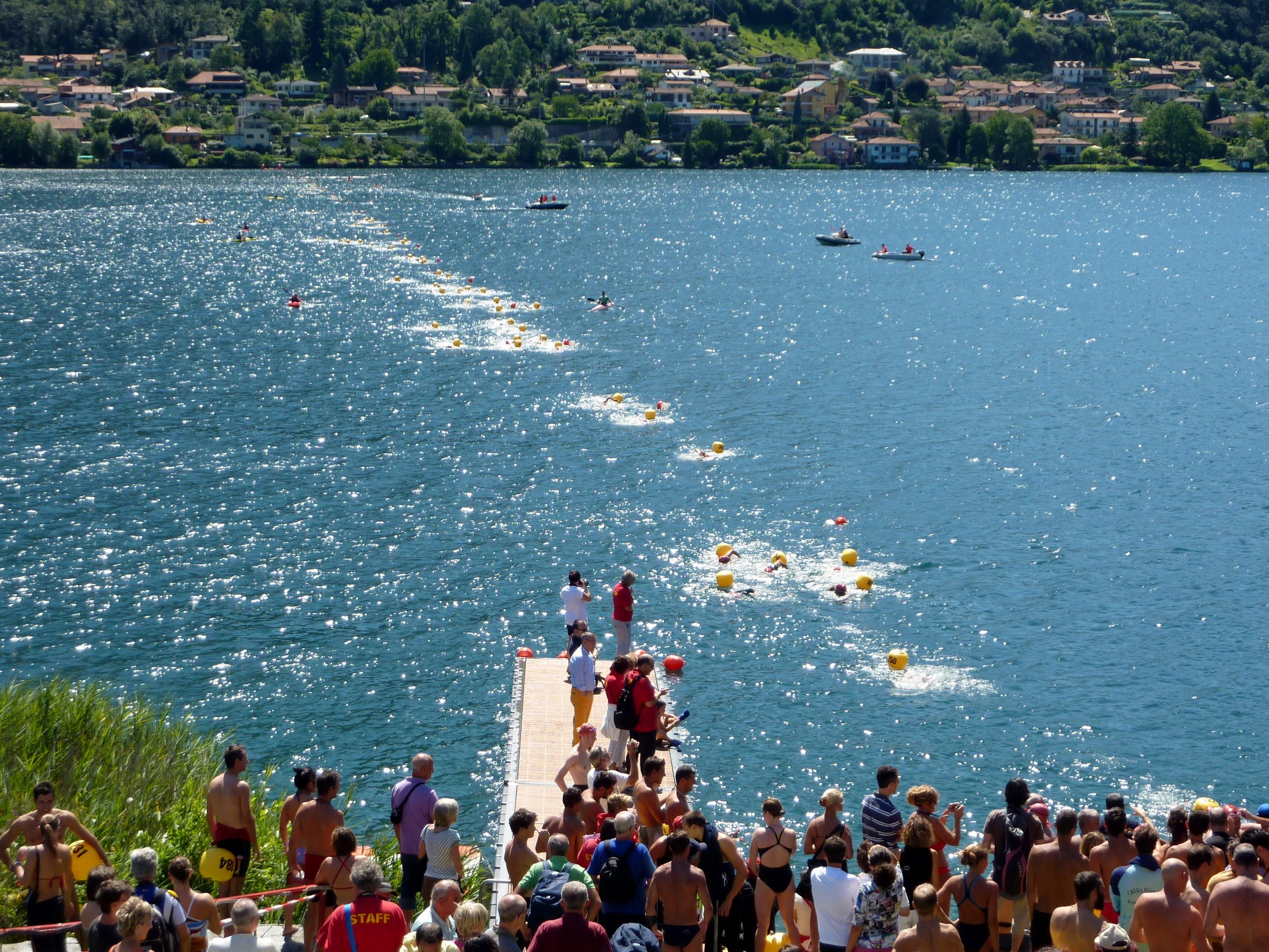 Stavolta la traversata è per lo spettatore un pò meno emozionante, un pò perchè non è più la “prima volta”, un pò perchè il contesto paesaggistico è inferiore a quello offerto nelle acque di Orta San Giulio ed un altro pò perchè non è possibile seguire la gara, se non da lontano sul terrazzo della Canottieri Omegna…