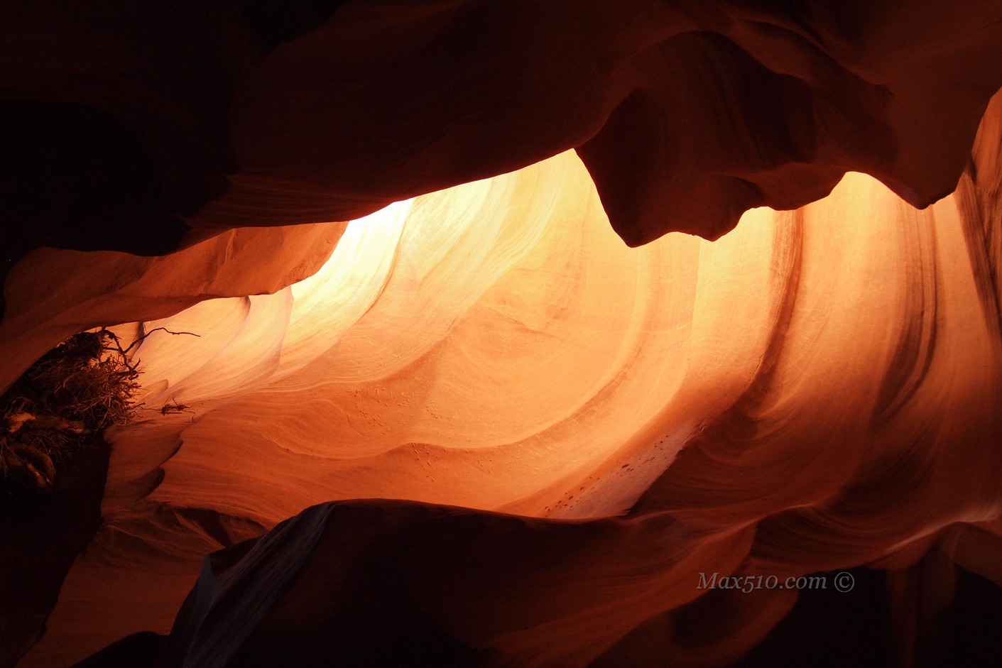 Purtroppo non sono riuscito a prenotare il tour per l’ora migliore, quella in cui il famoso raggio di luce che penetra tra le pareti crea un effetto suggestivo e lo vediamo sempre accostato al nome dell’Antelope Canyon; ma il sole riesce ancora ad infilarsi tra le profonde fessure di roccia donandoci comunque una bella luminosità e giochi d’ombra notevoli.