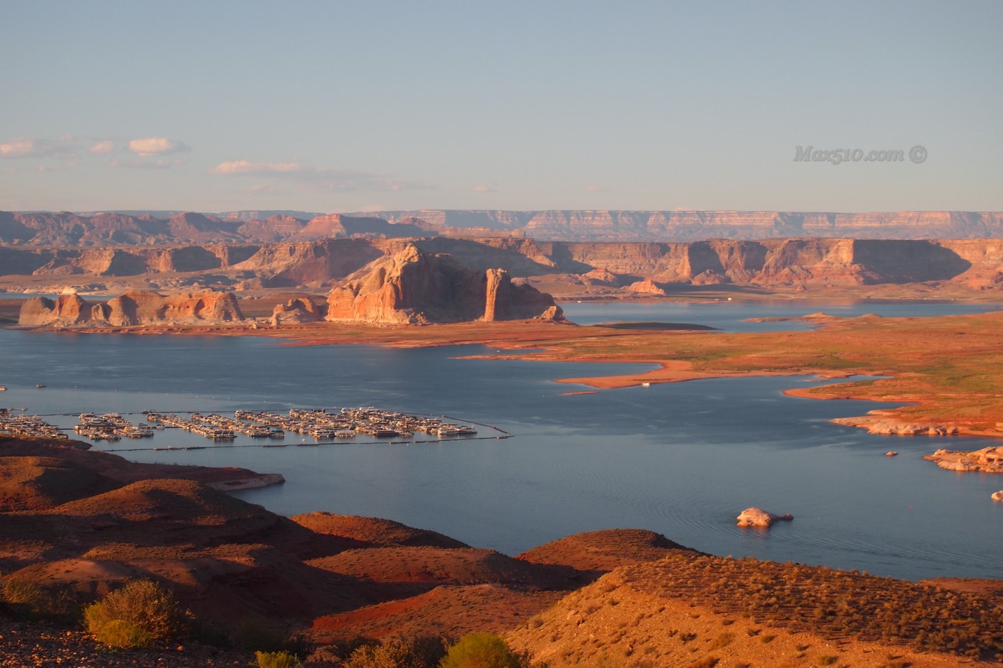 Quando l’ombra comincia ad impadronirsi di questa ansa, leviamo le tende per oltrepassare la diga ed andare su un punto panoramico sul lago Powell ad aspettare il tramonto.