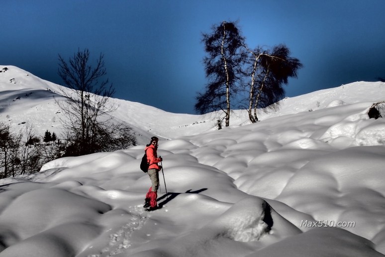 Ma è fuori dal bosco che la situazione… “precipita” per il sottoscritto 😀 In certi punti affondo fino all’inguine ! I tentativi di riprendere una posizione stabile sono tragicomici !