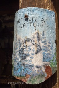 La strada si inerpica ed il nostro gatto cicerone ci invita con un’occhiata imperativa a prendere visione di un’insegna posta a guardia di una vecchia dimora…