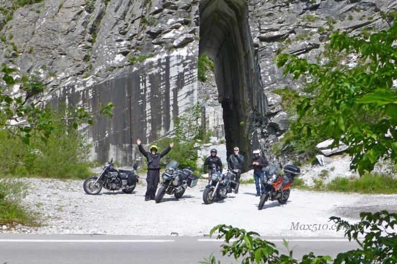 Ma il Cheru aveva visto il marmo solo sui gradini o in un posacenere, quindi lo portiamo alla scoperta di cave, dismesse ed operanti, fino alla solita sosta per la foto di rito poco dopo il bivio che porta a Stazzema.