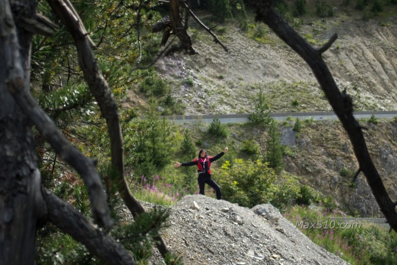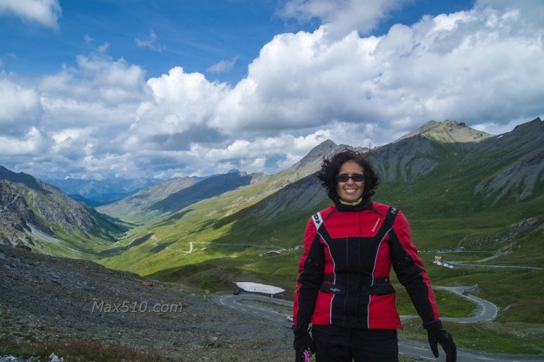 Saliamo con calma per goderci come sempre il paesaggio alpino; superiamo un’ultima volta il PX giusto poche curve prima della vetta, raggiunta la quale ci voltiamo indietro a rimirar la vallata e le sue vette.