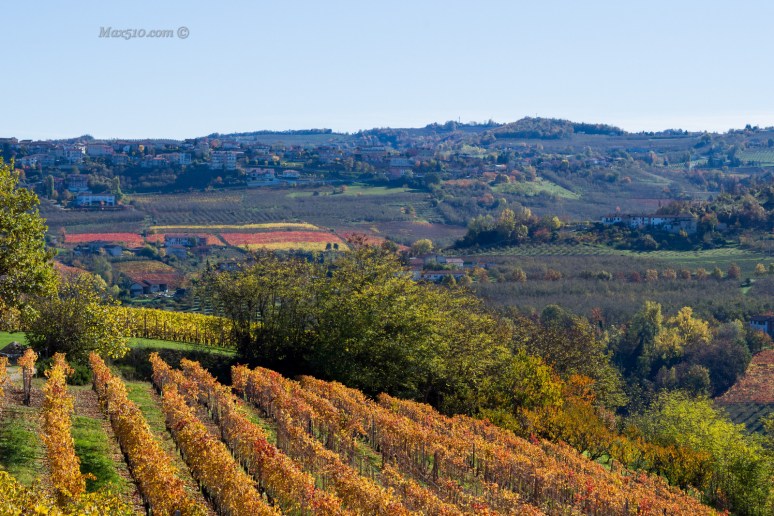 Sull’altro versante, alle pendici di Diano d’Alba, per via del controluce i colori appaiono ancora più netti e definiti…