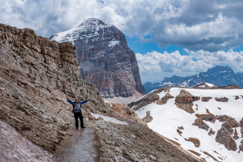 L’ultimo tratto del sentiero è relativamente facile e segue la pista da sci che porta al passo Falzarego.