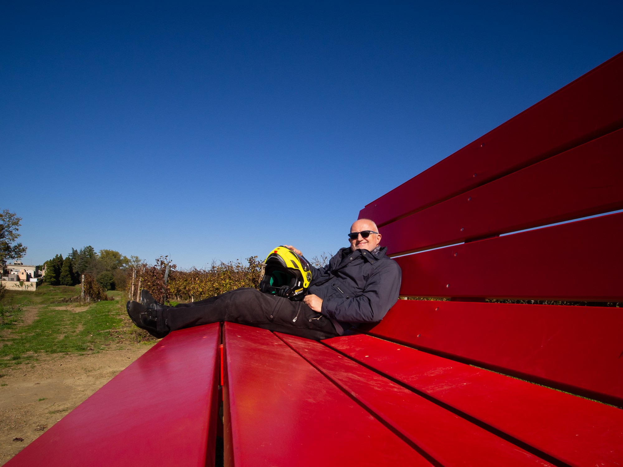 Grazie ad una giornata a dir poco spettacolare, ne ho approfittato per saltare in sella a Penelope e portarla su e giù per le colline del Monferrato, per una sana indigestione di panchine giganti.