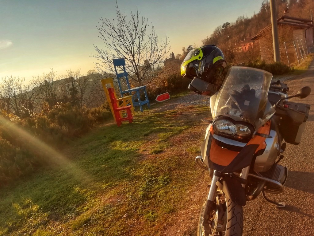 E’ tempo di tornare, il sole è ormai basso e nel fondovalle di queste colline, i raggi mancano da tempo: lo testimoniano la brina ai bordi della strada e soprattutto il termometro della moto, che in pochi minuti all’ombra mi crolla di 4°c !!!
