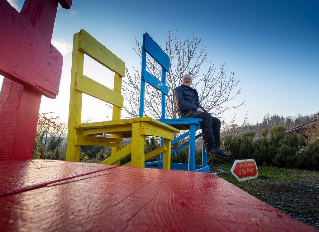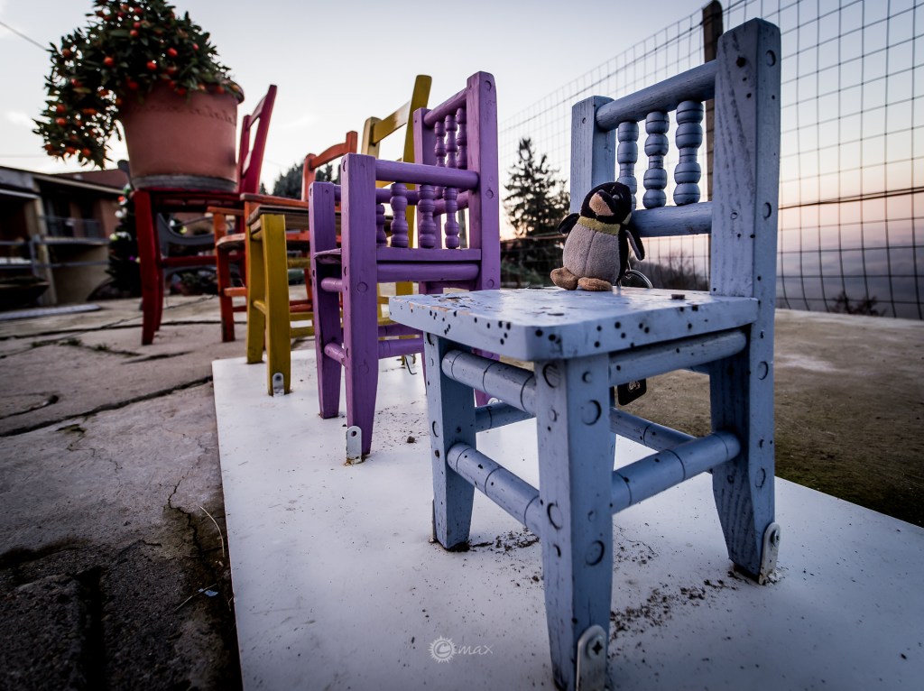 Ma non finisce qui ! Con sorpresa, in uno spiazzo panoramico nel centro abitato, trovo pure delle Little Chairs, per la gioia del Pingu che ci si fionda immediatamente !