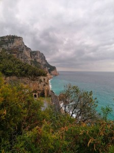 Un antro nella falesia di Capo Noli che affaccia direttamente sul mare. Purtroppo le nuvole che coprono il sole impediscono lo spettacolare effetto “camino acceso” che si ammira in molte foto nel web quando si arriva nei pressi dell’ingresso della grotta.