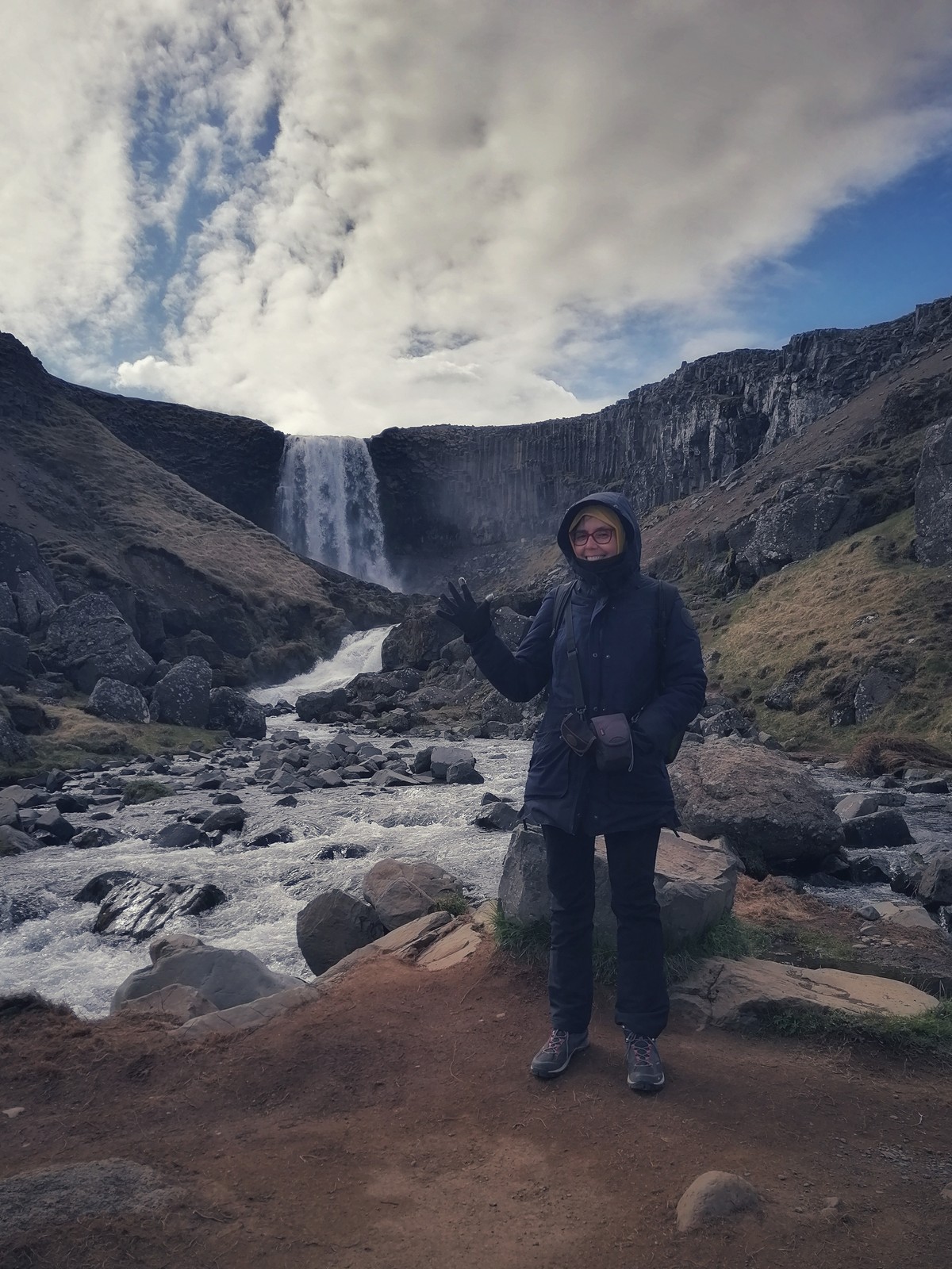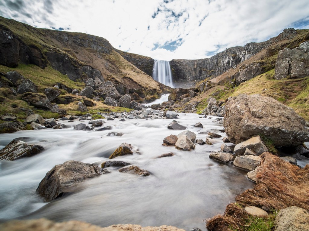 Per non perdere l’abitudine partiamo subito con una cascatella: Svöðufoss. Minore rispetto alle altre ma sempre ammaliante. Siamo solo noi due.
