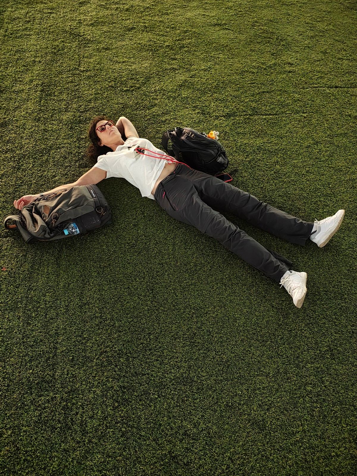Ci stupisce che non si debba pagare per entrare! Tutto gratuito ! Ridiscesi, ci facciamo attirare dal prato sottostante per un momento di riflessionezzzzz 😴