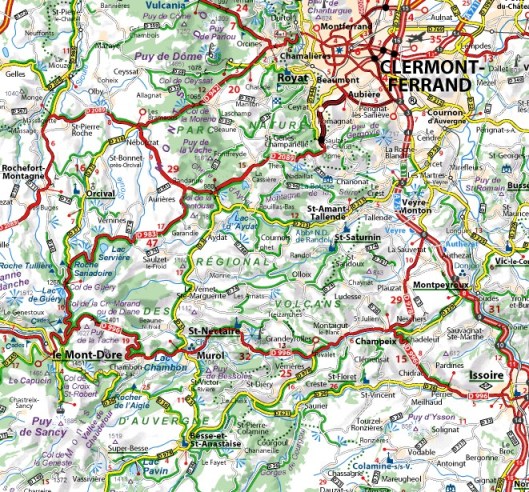 Breve trasferimento autostradale ad Issoire e trovata subito una chambre, lasciamo i bagagli per fare un giro nel Parco Naturale Regionale dei Vulcani d’Alvernia.