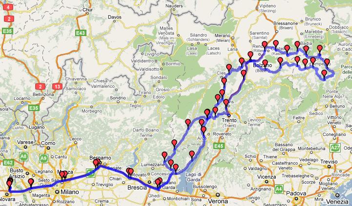Veloce trasferimento autostradale da Bozen a Trento per poi svoltare verso ovest per assaporare ancora qualche bel paesaggio scendendo attraverso le Valli Giudicarie ed il lago d’Idro.