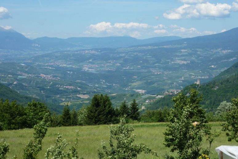 Proseguiamo in Val di Non, accolti da mille meleti e saliamo su per la Mendola ad ammirare con una fresca birra in mano, la valle dell’Adige e quel che ci aspetta sull’altro versante.