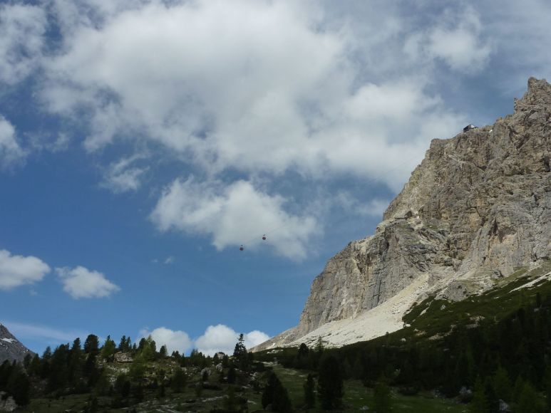A “Covtina” non abbiamo appuntamento con “Mavta” e quindi la passiamo a piè pari dirigendo verso il Falzarego, dove la foto all’incrocio delle mitiche funivie rosse che salgono al Lagazuoi non può mancare.