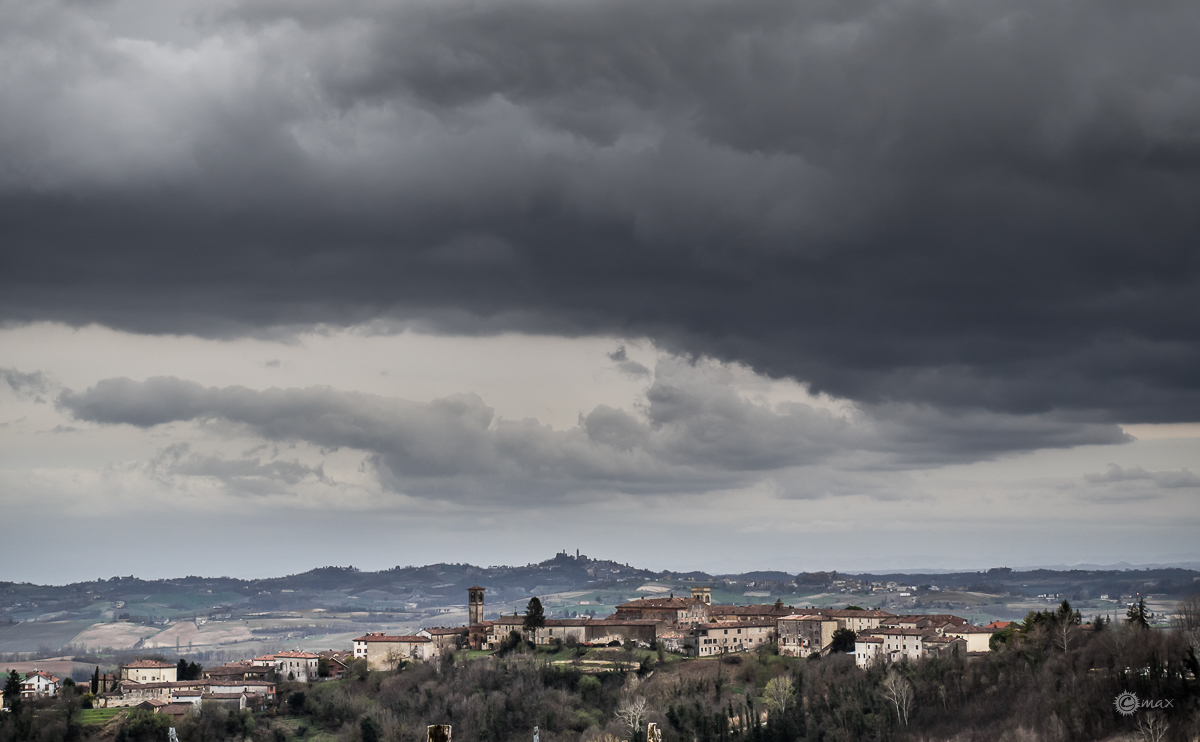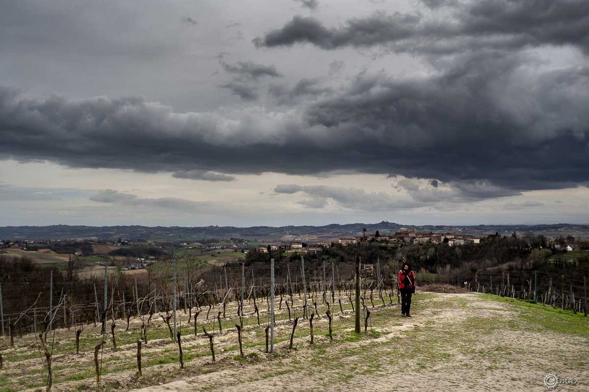 Attraversiamo il nostro “mare a quadretti” che piano piano inizia a prendere vita ed in poco tempo, via Vercelli e Casale, siamo sulla rampa che dalla capitale del Monferrato sale a San Giorgio. Sulla cresta della collina si intravedono sia la sagoma del Monte Rosa che quella dell’Appennino Ligure, ma soprattutto grandi nuvoloni minacciosi in avvicinamento.