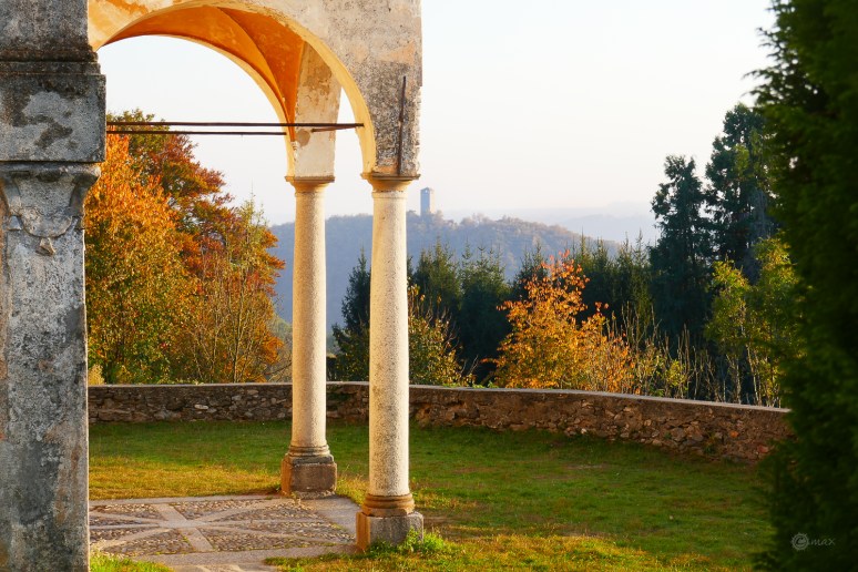 Di nuovo in sella per pochi chilometri e siamo appunto a Neive. Non siam entrati in centro paese ma abbiamo proseguito in cerca della panchina. Non trovandola subito, ci siamo affidati alle indicazioni di una simpatica nonnina che portava a spasso la nipote. Tornati sui nostri passi per qualche centinaio di metri e mollata la moto ai piedi di un’erta salita sterrata, l’abbiamo scovata all’ombra di una grande quercia, proprio sul cucuzzolo della collina, con vista verso Barbaresco e la sua storica torre.