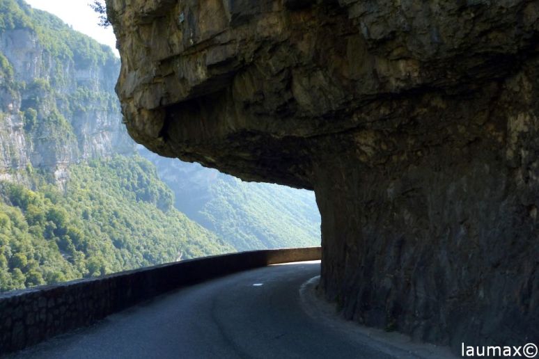 Iniziamo ad assaporare il verde di questi monti e la frescura nelle Gorges d’Engins, ma i primi “esempi” di strada strappata alla roccia li troviamo nelle strette Gorges de la Bourne !