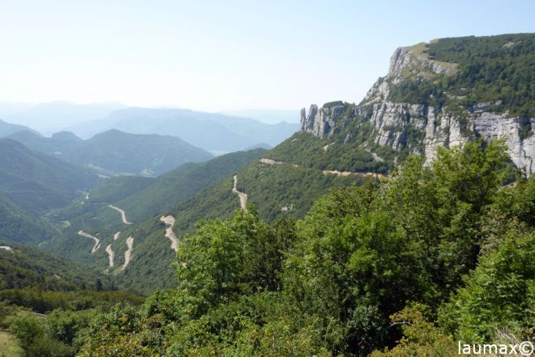 Attraversiamo la rigogliosa foresta di Lente e superato il Col de la Machine, si apre davanti a noi quello che chiamano il “Plat du Pays”: la più spettacolare ed elevata strada nella roccia del Vercors, quella che si affaccia sul maestoso canyon della Combe Laval.